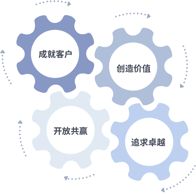 成就客户是一切决策的出发点,创造价值是衡量所有工作的标准,追求卓越是w66旗舰厅做事做人的态度,开放共赢是w66旗舰厅的格局也是最终的结果。价值观的齿轮环环相扣,推动着组织里的每个人不断向前。